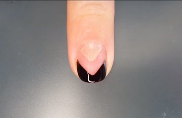 El proceso es muy fácil, esmalta tus uñas con una base en color negro, déjalas que se sequen y luego pinta los extremos de las uñas con un pincel fino de detalles, realiza unos semicírculos en color turquesa, debe colocar las capas que sean necesarias para obtener el color que desea, y para finalizar sella con un Top Coat.