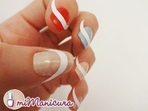 Lo que vamos a hacer en esta ocasión es este mismo procedimiento pero cambiando los colores de los esmaltes. Nosotros hemos pensado estos cinco ejemplos de manicura francesa con colores;