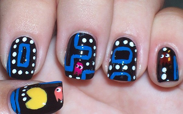 Los videojuegos me gustan mucho y llevar algún personaje en los diseños para uñas cortas es ideal. Sólo ten cuidado a la hora de elegir a tu personaje ya que entre más detalles tengan menos será factible hacerlos debido a lo pequeño de la uña. Una opción es usar a los hongos de Mario Bross ya sea en color verde o rojo.
