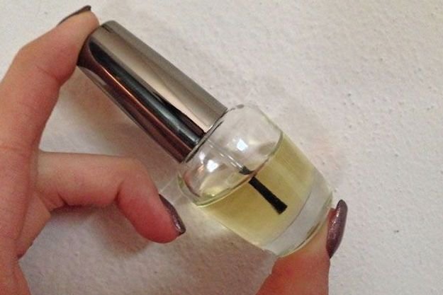 No quites todo el aceite que se utiliza para el tratamiento de las cutículas de las uñas, pero aprieta ligeramente con una toalla de papel para eliminar el exceso, el resto de aceite que queda protege a la uña contra el glitter.