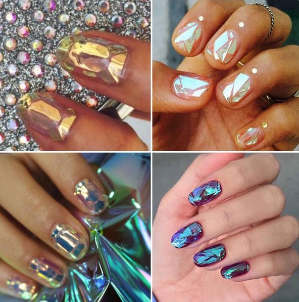 Uñas como cristales rotos es la tendencia que se ha hecho viral en Instagram en los últimos días. Consiste en pegar pequeñas piezas de papel celofán en las uñas que reflejen la luz.