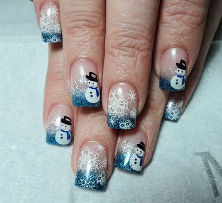 7. La nariz del muñeco nevado la tienes que hacer con la pintura de uñas acrílica naranja