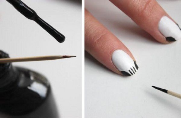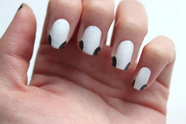 Ahora haz dos semicírculos de esmalte negro sobre las dos esquinas de cada uña. Debería quedar así como muestra la imagen.