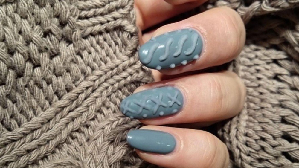 3- Estampados de Suertes navideños, podemos ver que algunos de los suéter navideños tienen unos simpáticos animalitos los cuales pueden ser reproducidos en gris con un esmalte para uñas de color gris los cuales se pueden usar e la e poca navideña o cuando se desee utilizar.