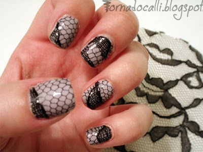 Te presento algunos diseños de uñas con encaje que me gustaron. Es fácil crear los diseños, pero no se mantienen en su lugar por muchos días.