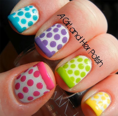Distintos colores con puntitos crean diseños interesantes y son muy fáciles. Los puntitos pueden hacerse con un palillo o con el puntero.