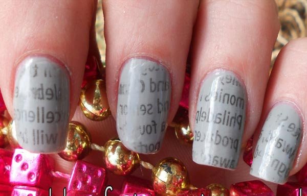 El uso de diarios o periódicos para crear arte parece increíble. Para saber más acerca de esto, también tenemos tutoriales para hacerlos. Básicamente consiste en transferir las letras de una hoja de periódico a las uñas mojando con agua y aplicando sobre la superficie un pedazo de hoja.