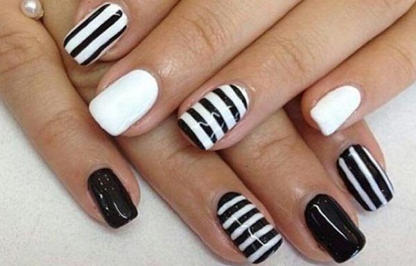 Las rayas se ven tan atractivas que son otro de los favoritos para las señoras. Para crear rayas, es posible que necesites una herramienta especial, un “striper”, con cinta adhesiva o puedes crear rayas con un pincel fino.