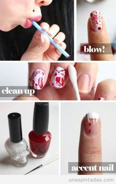 Existen muchas figuras, colores y dibujos que puedes combinar para crear uñas originales y que no todo mundo tendrá, así que inspírate en películas de terror y ve a tu puesto de uñas que más te guste para conseguir lo que te falte.