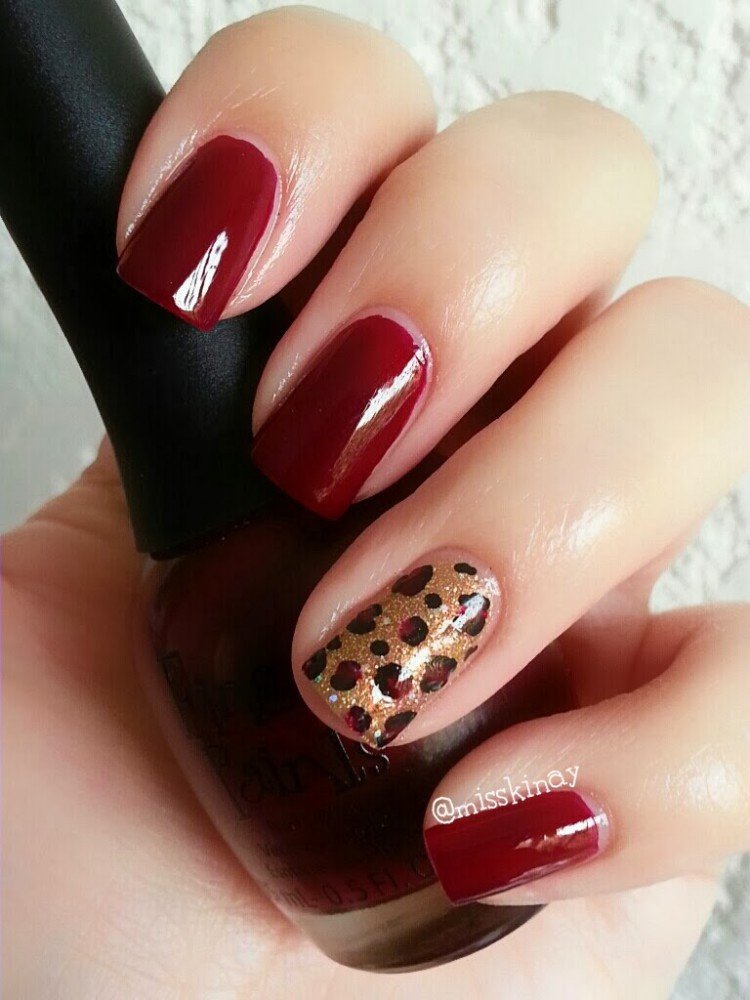 Elegir el rojo con un diseño animal print es una decisión muy acertada, aunado a ello también se pueden agregar esmaltes glitter, generando efectos visuales fantásticos, es decir, es una súper combinación y a pesar de que producen emociones profunda puedes mezclarlos con otros tono y obtener combinaciones espectaculares, como entrelazar texturas visuales entre rojo y dorado, pueden marcar una importante diferencia.
