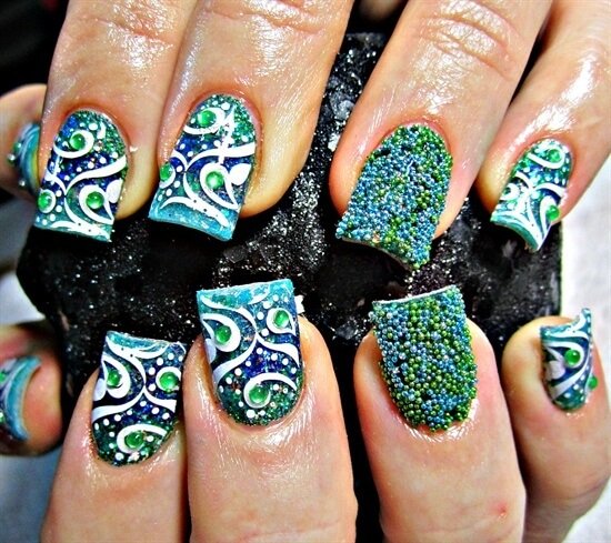 Existen miles de formas de aplicar efecto caviar en las uñas. Se puede cubrir las uñas en su totalidad con un solo color, alternar el color entre uñas y los más experimentados hasta crean motivos y diseños usando diferentes colores dentro de la misma uña para inventar formas como corazones o hasta efectos de degradado de color.