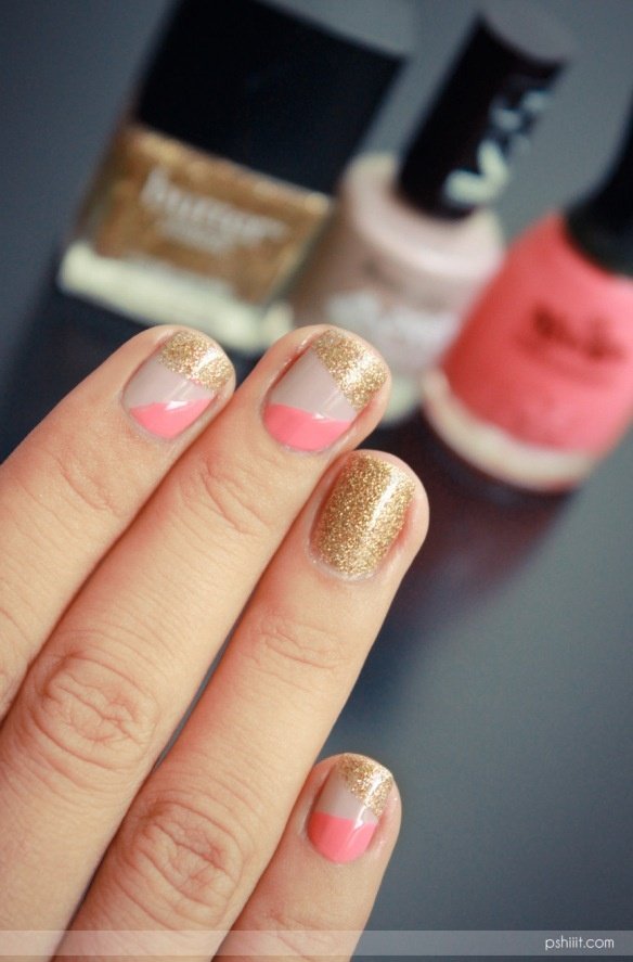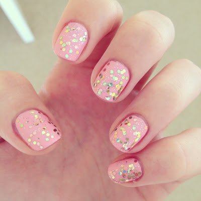 • Este me encanta, combinar colores paestel con un toque de glitter dorado.