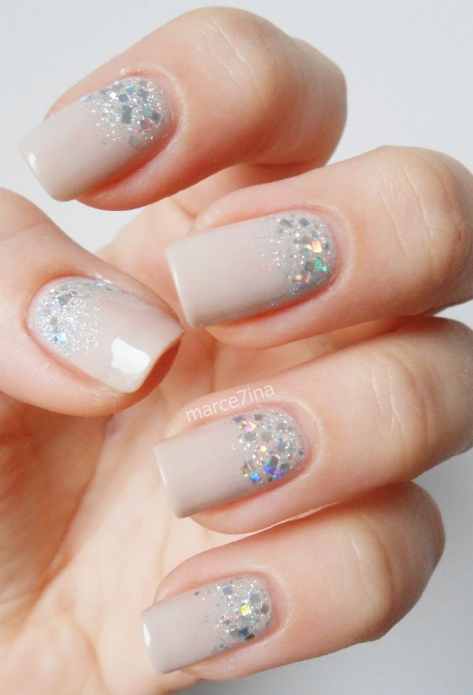 • Una base nude y un poco de glitter plateado