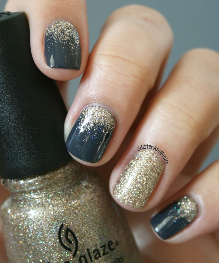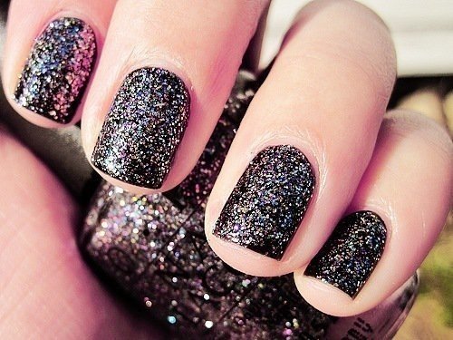 • Una base en negro y glitter en plateado…
