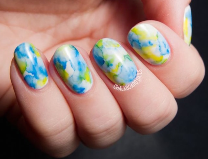 Por suerte, esta tendencia no implica llevar pesadas piedras sobre tus uñas, sino solo simularlo. Elige el color que más te guste y cubre la uña con un par de capas. A continuación, con un tono negro o gris (o de cualquier otro color que combine con el de fondo) empieza a dibujar las aguas o vetas que haría este material si fuera real y difumina ligeramente con una esponjita. Repite el proceso hasta que te guste el resultado. A medida que vayas practicando te irán quedando mucho más realistas.