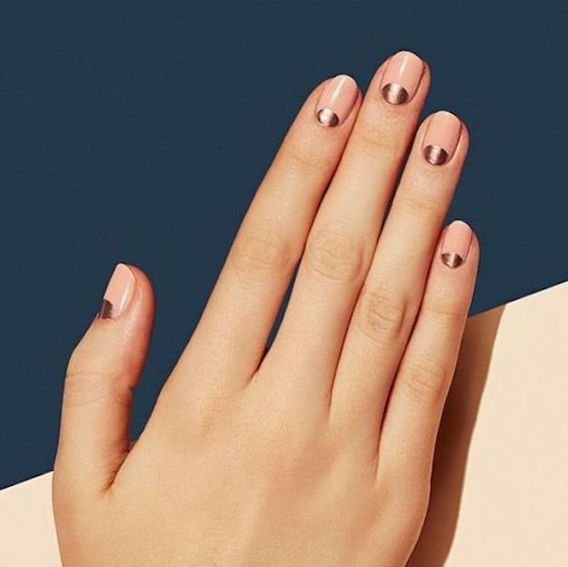 Existen manicuras que se convierten en clásico, por ejemplo: La manicura francesa o la media luna. Estos diseños son muy vistoso y muy fácil de realizar. La manicura en media luna es muy elegante y te permite divertirte un poco con el diseño y el tono de las uñas. este diseño fue tendencia en los años 1950 y 1980, pero en esta época ha vuelto con más fuerza. Aquí te dejo algunos diseños.