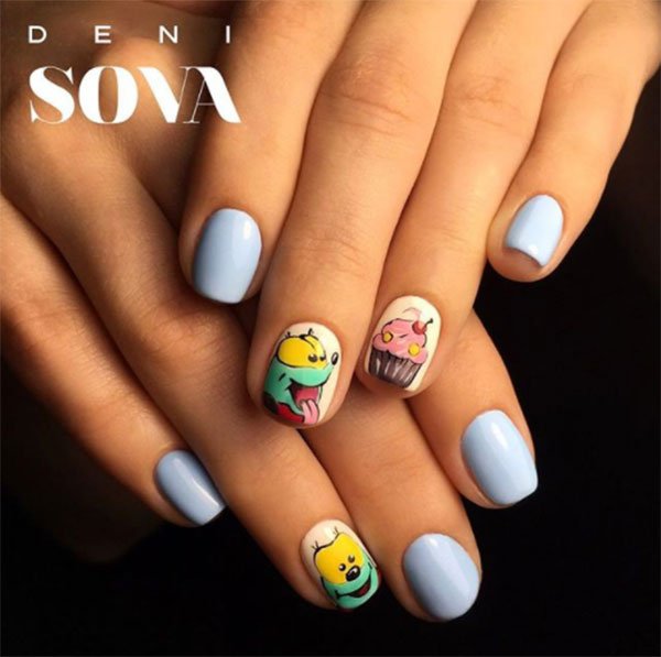 Con esta manicura podemos lograr un look muy cute y sencillo ya que las estampas con formas o diseños divertidos se ven muy bien en las uñas cortas.