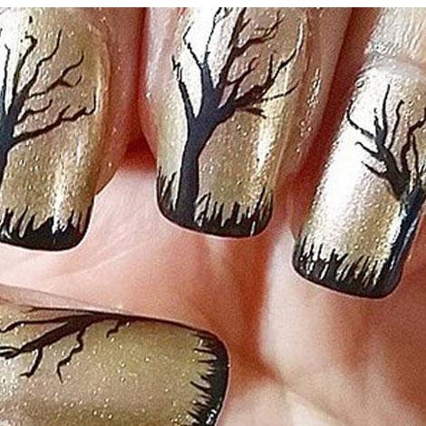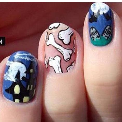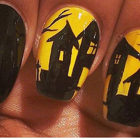 Puedes dibujar la típica casa cerca de un cementerio en tus uñas, ¡para matar de un susto a cualquiera!