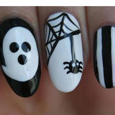 El blanco y negro son los colores más representativos para la noche del 31 de octubre. Utilízalos para crear dibujos como telarañas o fantasmas y dejar a todo el mundo boquiabierto.