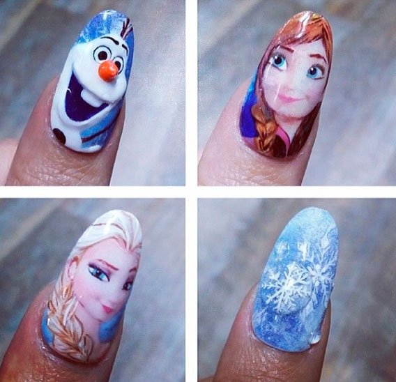 Si le preguntas a cualquier niño cuál es su película favorita ahora mismo, te dirá que Frozen. Para realizar este nail art tienes que tener mucha paciencia y gracia. No es una manicura para principiantes. Aunque siempre puedes recurrir a las pegatinas para uñas. Son fáciles de aplicar y el resultado es ideal.