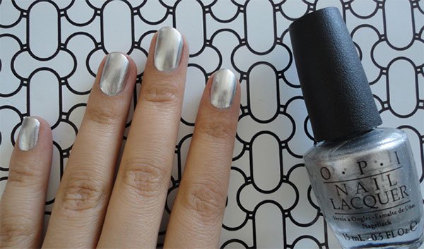 - Lo primero que vas a hacer es aplicar el brillo de esmalte, déjala secar. Luego debes elegir el color de esmalte que usaras de base, en esta ocasión utilizare un esmalte en tono plateado, aplica una capa uniforme y déjala secar. Repite el mismo proceso.