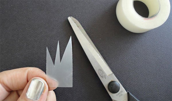 - Ahora debes tomar la cinta adhesiva, la que es satinada ya que es más fácil de retirar y no se pega tanto a la uña. Ahora debes cortarla de la forma que quieras, pero como yo quise realizar uno más sencillo lo corté en varias tiras verticales, ojo puedes hacer volar tu creatividad con las formas que quieras hacer con la cinta.