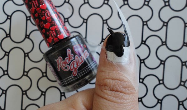 - Aplica el segundo color de esmalte que elegiste para decorar, es mi caso utilizare el color negro y con capas muy delgadas vamos aplicándola, ojo dejando secar muy bien entre cada capa.