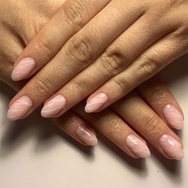 - Ahora puedes colocar una capa de esmalte en tono rosa claro o nude, para este tipo de decoración será más original si usas estos tonos, ya que queremos que nuestras uñas parezcan piedras de mármol o cuarzo. Debes esperar a que seque muy bien.