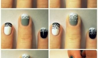 Este es un sencillo Nail Art donde lo que importa no es el dibujo, sino la combnación de colores y punteados. Pintado las uñas de color negro, blanco y gris
