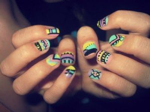 Los diseños tribales es otra de las tendencias que no solamente se lleva en la ropa, sino que también puedes usarla en las uñas, son muy coloridos y hay una infinidad de diseños que puedes hacer.