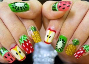 Si eres de aquellas amantes de la naturaleza y todos sus frutos puedes realizar diseños para uñas inspiradas en tus frutas favoritas como fresas, kiwi, bananas y muchos más.