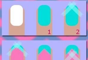 Así de fácil es realizar un diseño de uñas con un zigzag o una V de tres colores. Como veis, primero se pinta la base de la uña de color base, por