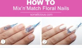 Le ponemos una nota bastante alta a esta manicura que combina un estampado de rayas con uno se flores, que parecen pétalos de orquídeas. Estad atentos/as a la parte del