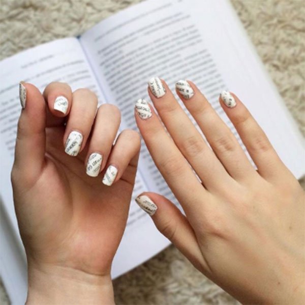 Si quieres crear una manicura espectacular utiliza…. Un periódico. Si, un diario normal. Adicionalmente necesitaras esmalte, un disco de algodón y líquido para transferir las letras impresas sobre las uñas (perfume o alcohol)