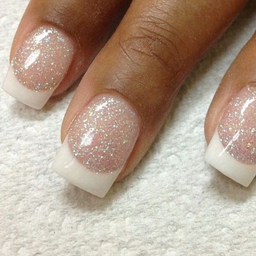 Esmalte natural o rosado con purpurina
