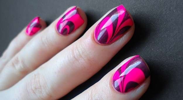 En el vaso con agua, coloca gotas de esmalte de distintos colores. No te preocupes si se ve muy transparente. Con el palillo mezcla los esmaltes ligeramente. Una vez que tengas el diseño que deseas mete tu uña al vaso. Déjala en el agua por 10 segundos y antes de sacarla usa el palillo para quitar el resto del esmalte flotante.